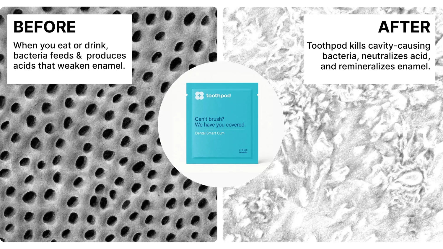 "Toothpods exceeds all other gum as it remineralizes tooth enamel and prevents gum disease on top of tasting great and making your mouth feel fresh.